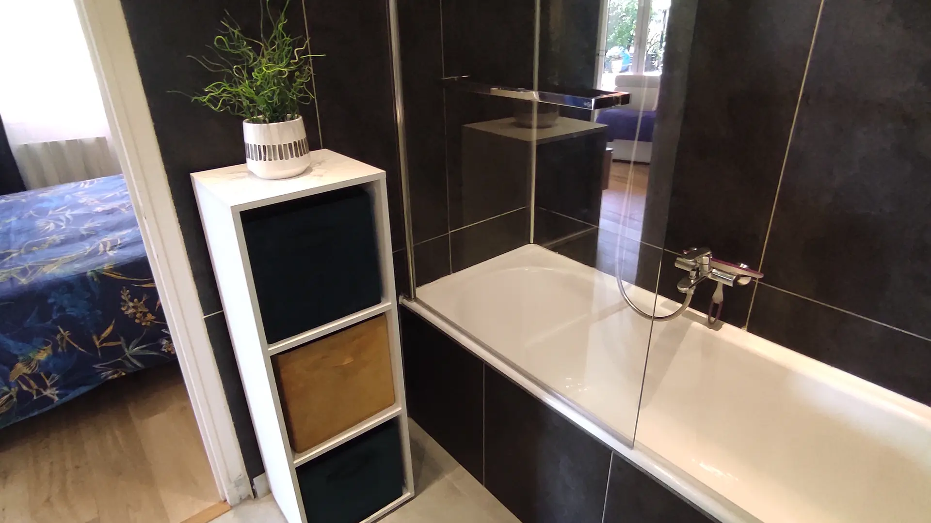 2 pièces climatisé - en rez-de-jardin et au calme - à 2 pas de toutes les commodités.